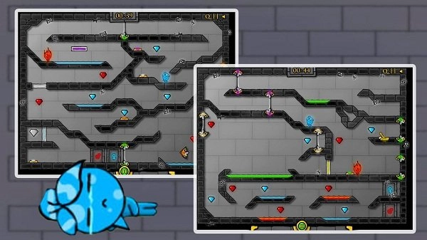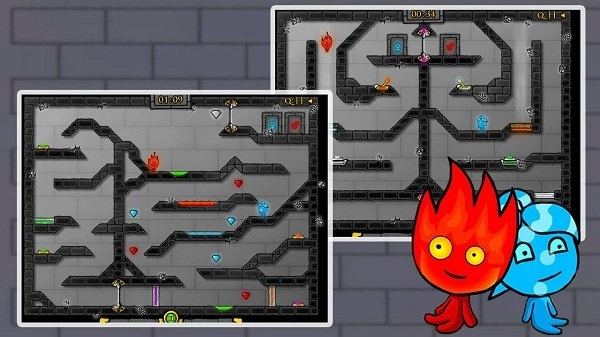 在游戏过程中,玩家需同时操控冰属性与火属性的两个角色。借助屏幕上的虚拟按键或滑动手势,能够指挥角色完成移动、跳跃以及发动攻击等一系列操作。