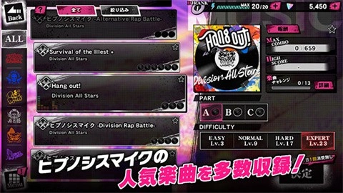 对音乐节奏类游戏感兴趣的话,不妨体验下这款名为催眠麦克风的最新作品。它不仅包含多样的游戏内容,还有别具一格的玩法设计,能让你在游玩过程中领略音乐的美妙,同时感受竞技带来的热血。期待你参与到这场充满音乐氛围的活动中!