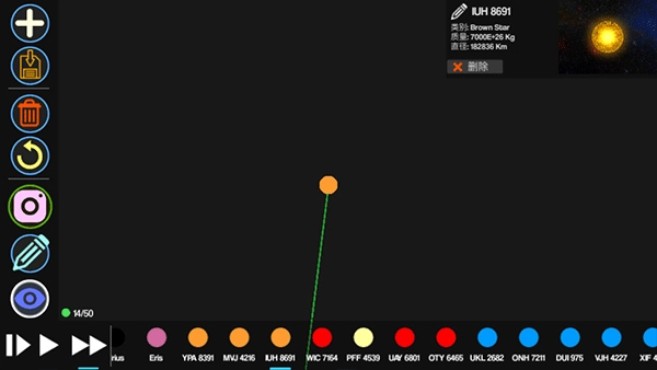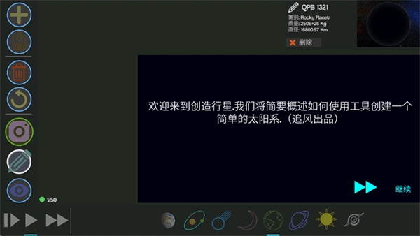 点击下方的球体,你可以往里面添加星球