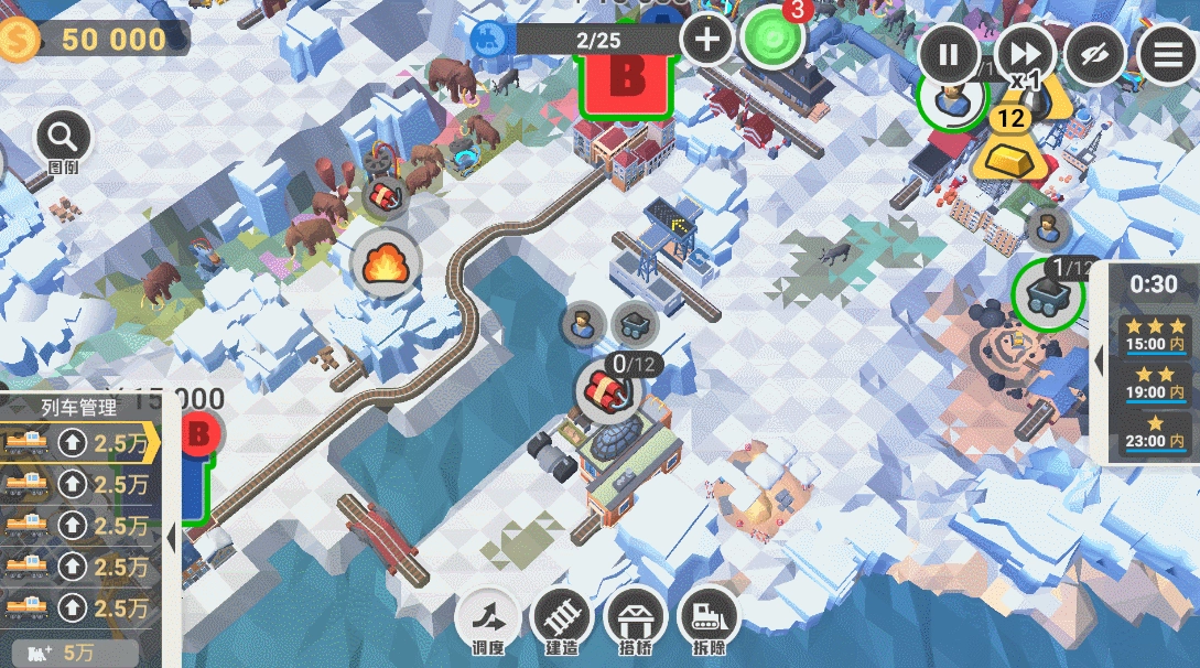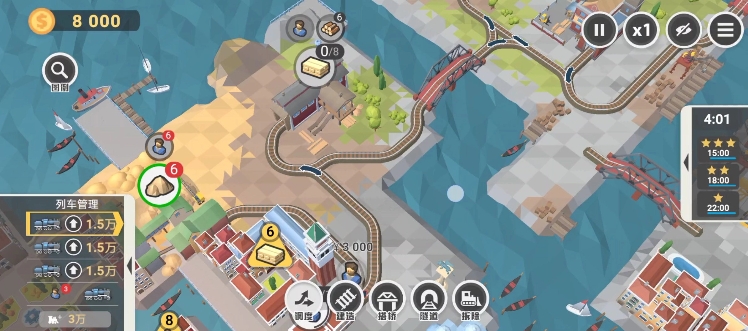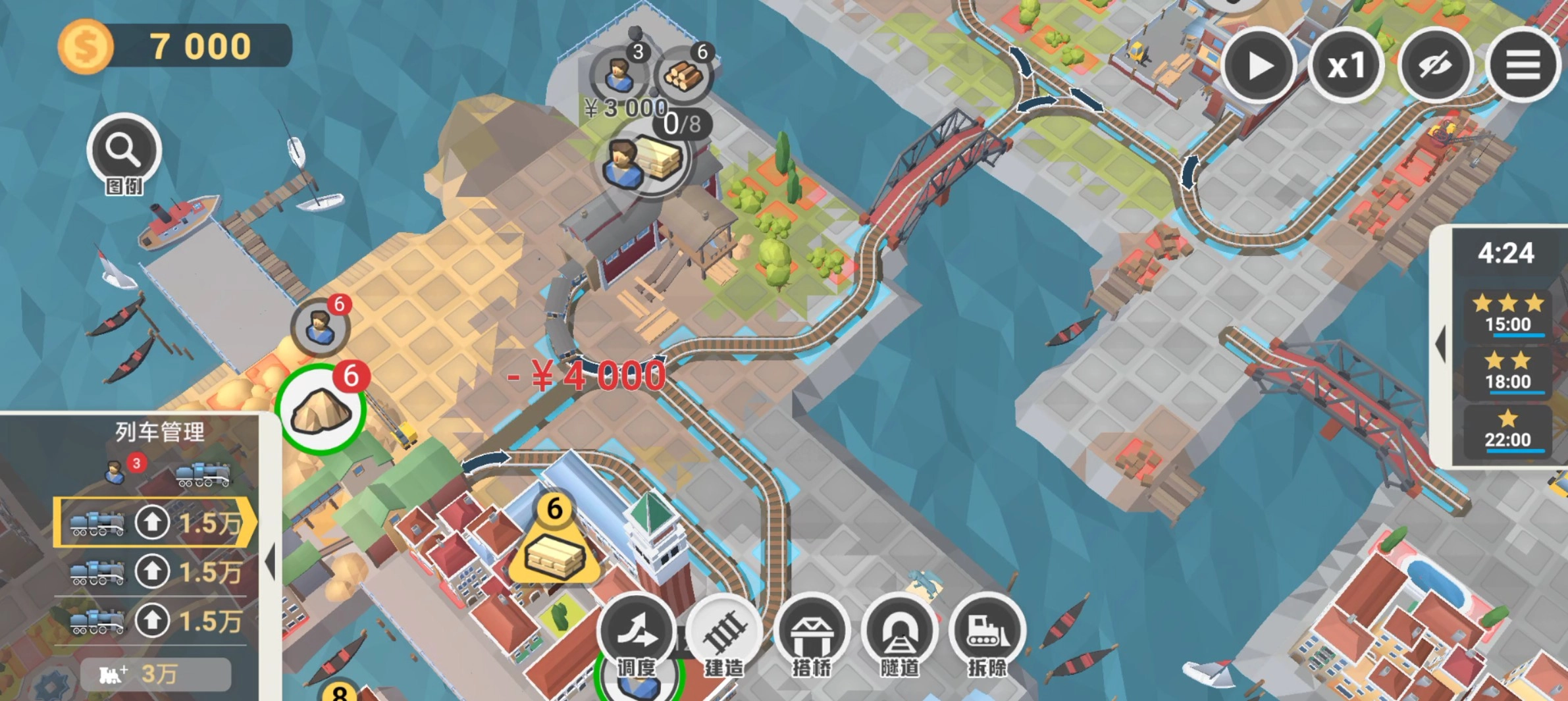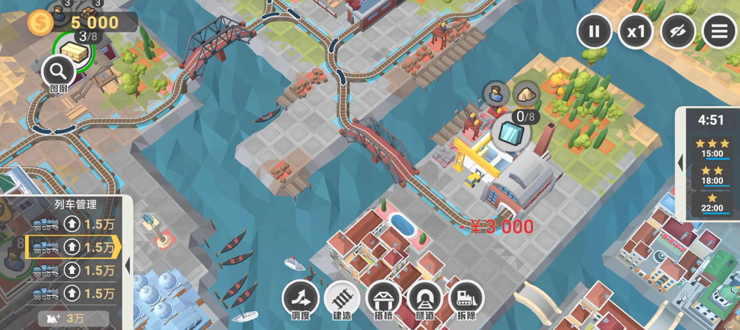 3,这一关的关键要点在于,初期阶段资金十分匮乏,优先建造哪座桥是个重要问题,这里必须先修建砂石厂左侧的那座桥,并且同时铺设好从砂石厂连接到该桥的铁路。