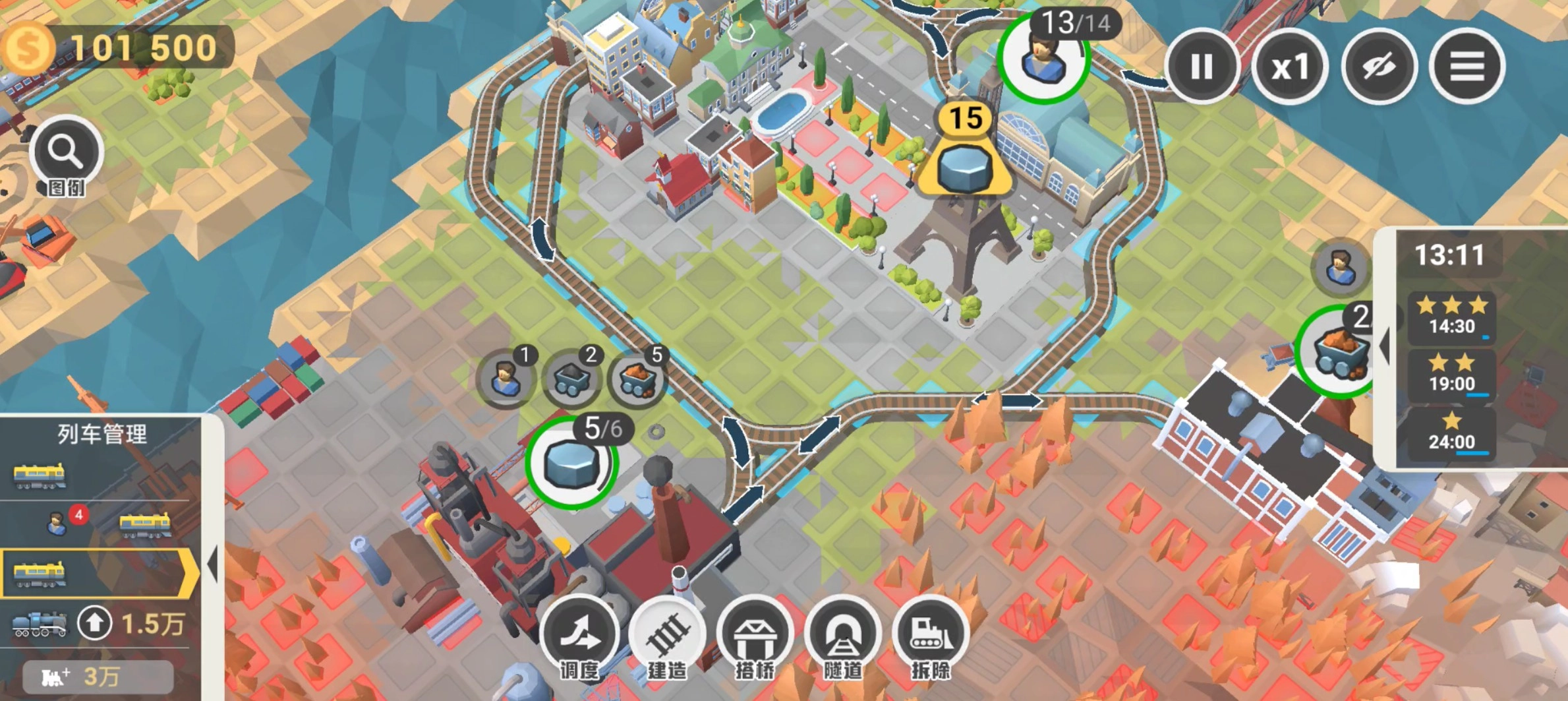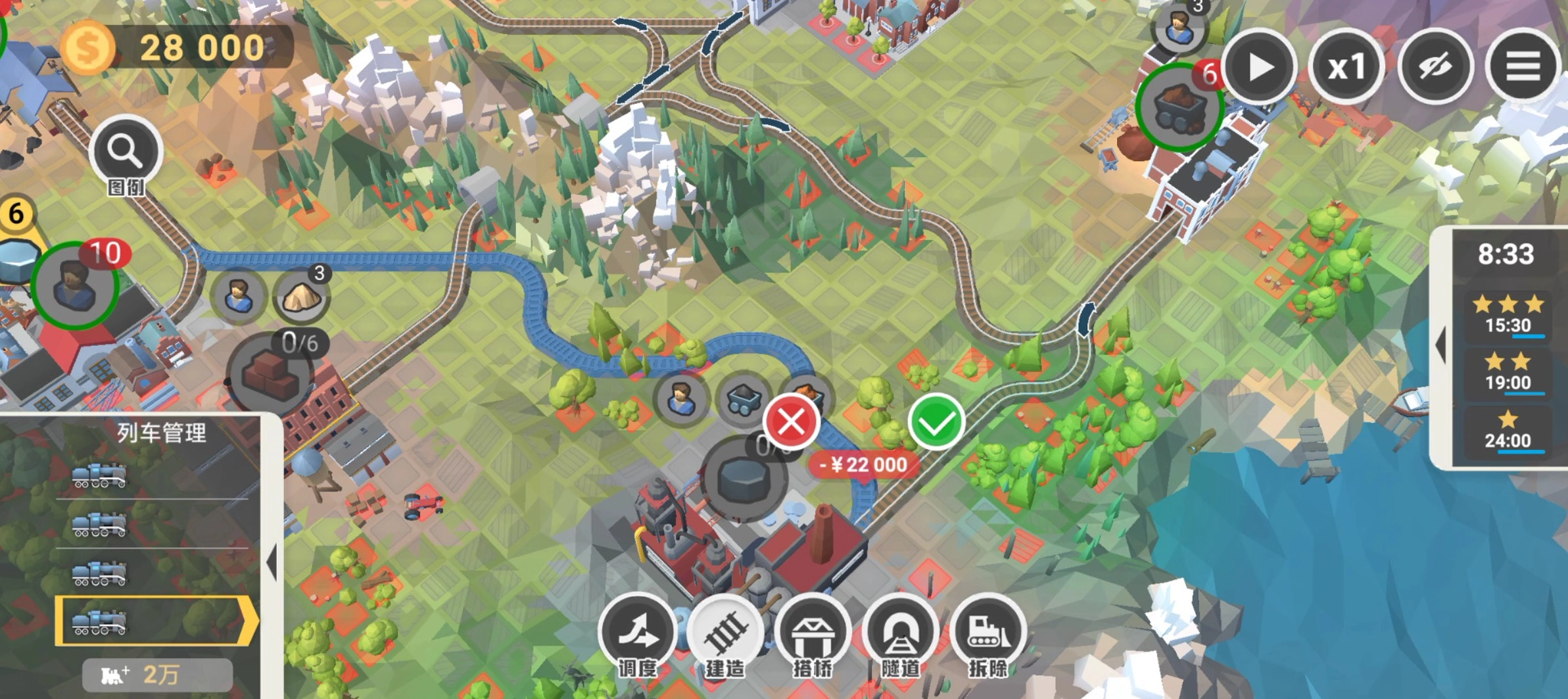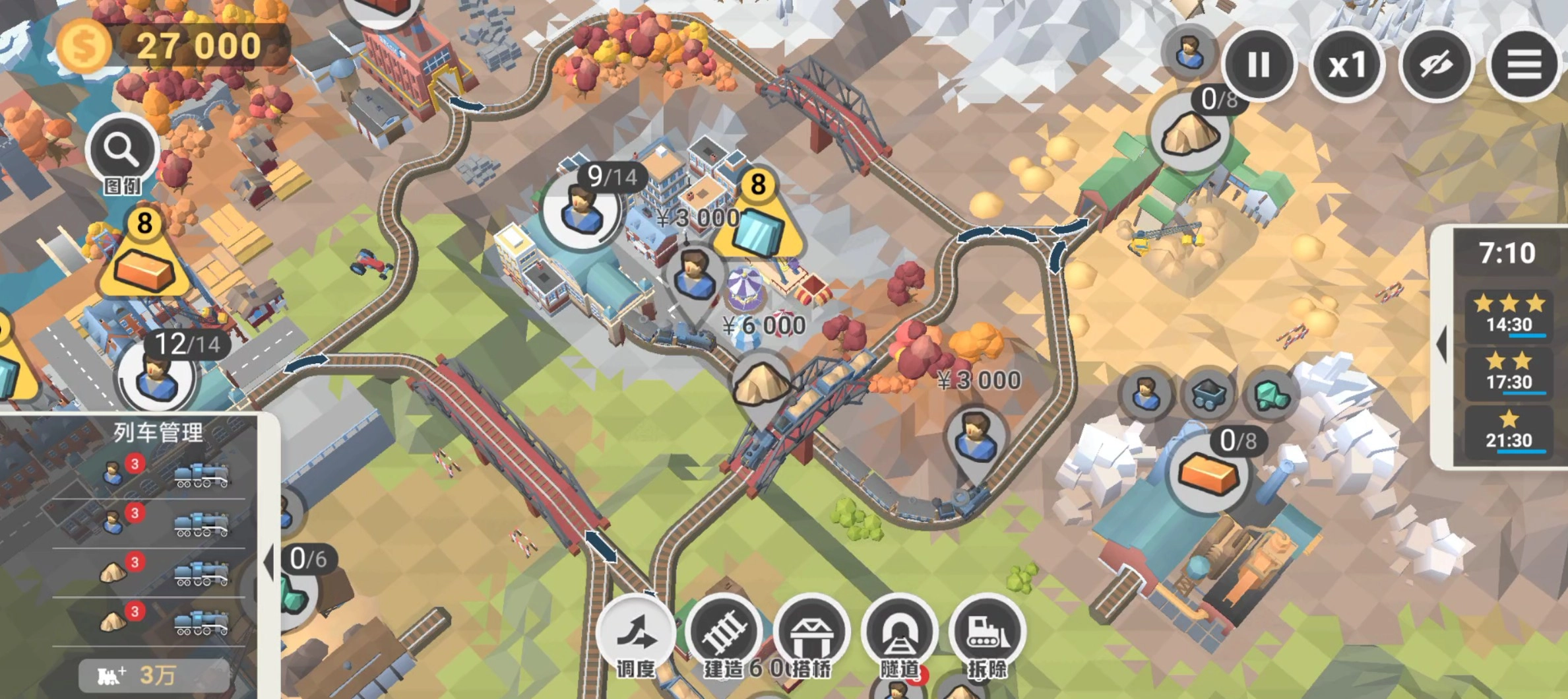 想要发展你的小山谷,首要任务自然是规划铁道路线。你得合理设计铁路走向,不同运输路线之间可能会出现交叉或重叠的情况。你可以通过升级火车头,或是借助隧道、大桥来开辟捷径,以此提升运输效率。你的目标是以最低的成本、最短的时间完成运输任务,至于怎样规划才能最高效地达成目标,就得看大家的智慧和创意了。