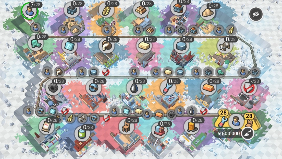 3,再存1万4左右,就能铺设橡胶厂和轮胎厂之间的铁路了,之后稍微赚点钱,就铺设上方城镇到轮胎厂的支线。这样轮胎的储备也能积累起来,目标是存够4个轮胎,另外再把4个橡胶和4个工人安排到轮胎厂里。