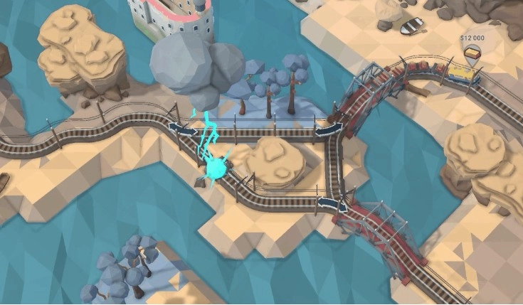 游戏世界里分布着形形色色的地形,像绿意盎然又静谧安宁的山谷、空旷寂寥不见人影的沙漠,乃至赤红一片且酷热难耐的火山,不同地形都有着各自的挑战——例如在海边区域,就有可能遭遇雷电天气,进而破坏你铺设的铁轨。