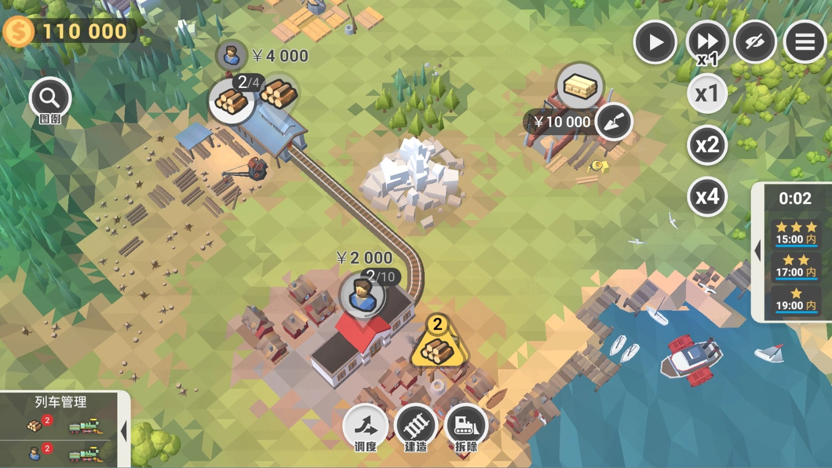 等列车驶出车站后,选中负责运送人口的那趟列车,接着点击调头按钮。在此过程中,要避开碰撞、修车之类的操作,同时完成2木材的相关任务。