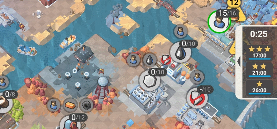 流程:1. 铺设左侧城镇至砂石厂的铁路,先安排12名工人开展工作,待后续开始运输作业后,再将工人数量补充至17人。