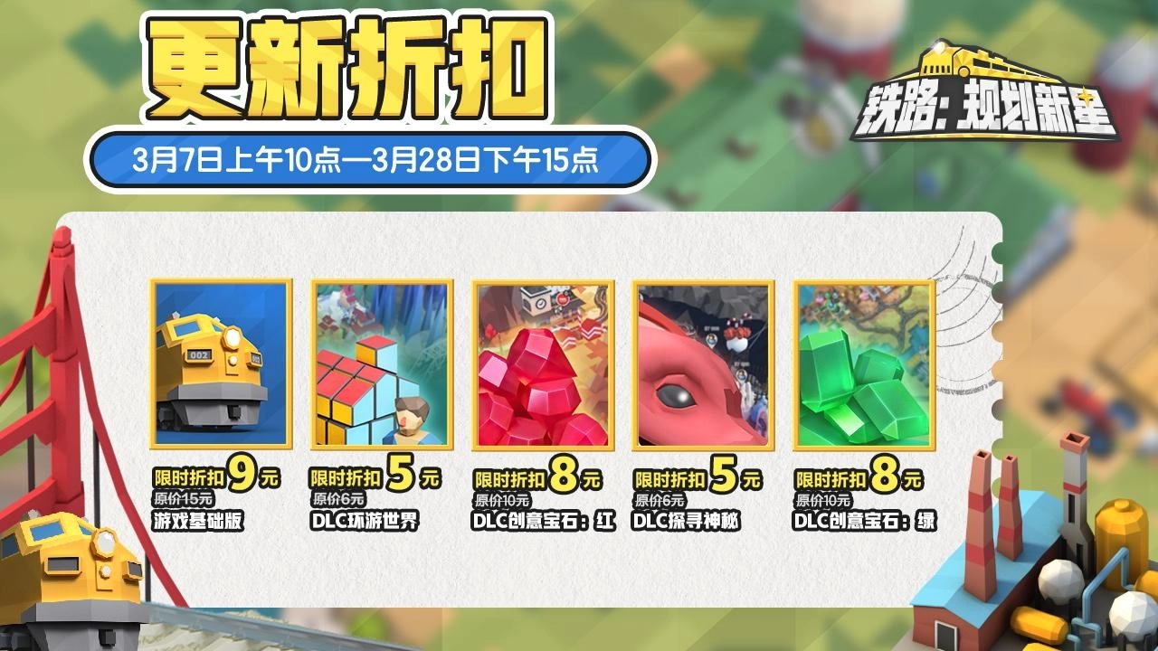 Steam特别好评游戏《火车山谷2》的中文正版移植作品——关卡式铁路规划策略游戏《铁路:规划新星》已于3月14日完成更新。本次更新的核心内容包括全新DLC「探寻神秘」与「创意宝石:绿」正式上线,诚邀各位玩家前来体验!