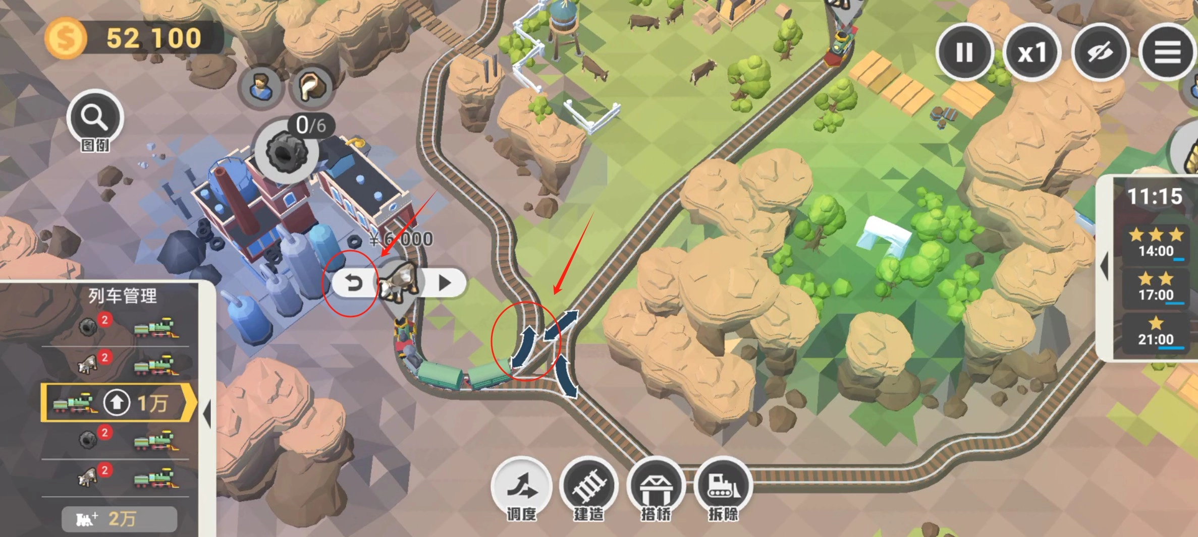 流程如下:第一步,先把下方城镇和砂石厂之间的铁路铺设好,安排工人过去,等赚了点小钱后,接着铺设下方通往砖头厂的铁路,同样派遣工人;之后再修一条从砂石厂到砖头厂的支线铁路,这一阶段的目标是攒够6个砖头和6个砂石。