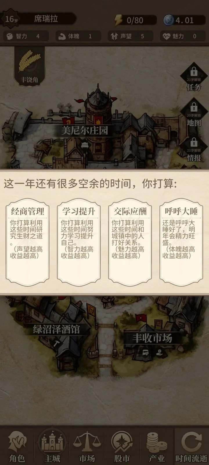 打工就是用体力去换取银币和好感度,这是20岁之前主要的赚钱方式,每次打工都会消耗1点行动力。
