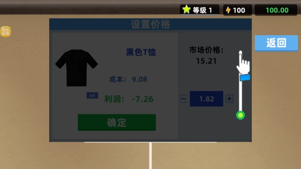 各类服装均可上架,玩家需要为服装设定价格,合理的定价能够吸引更多顾客,从而带来更高的收益。