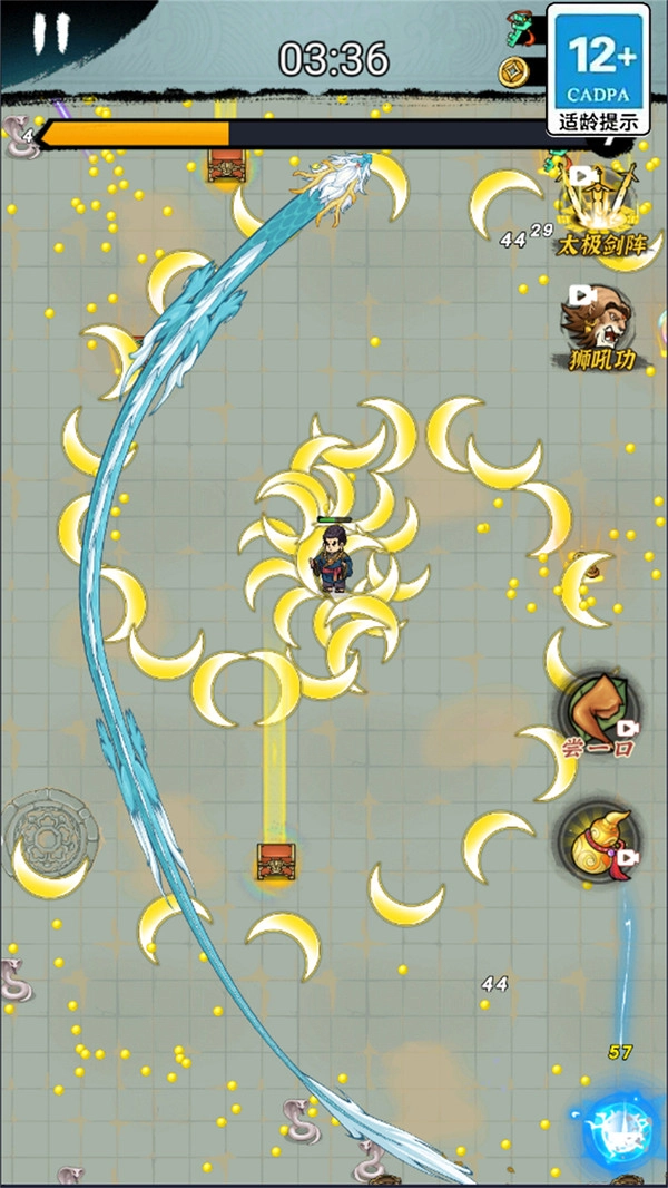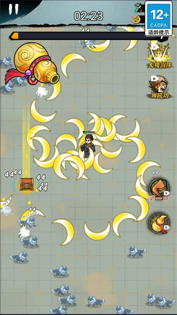 游戏的核心玩法是轻松休闲的修炼模式,玩家不需要进行复杂的操作,只需通过点击或滑动屏幕,就能操控角色投掷飞刀来消灭怪物。