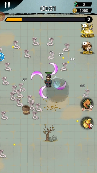 玩家需留意角色的移动位置,迅速消灭周围的敌人,持续提高角色的等级,开启更多厉害的技能。