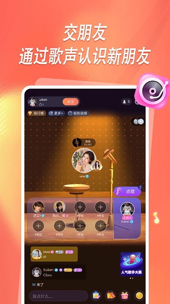 派对嗨玩,乐趣无穷,K歌扩列相亲组队等海量玩法,拥有线上交友圈。