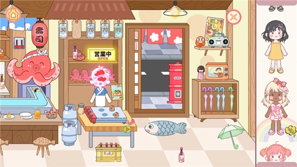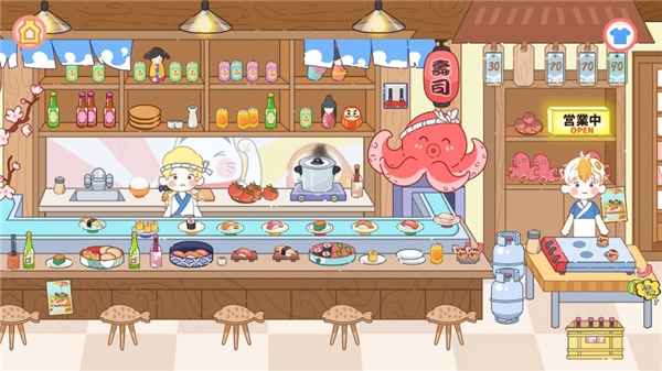 这里小编选择的是寿司店场景,玩家在这个场景里需要把各类物品摆放得井然有序。