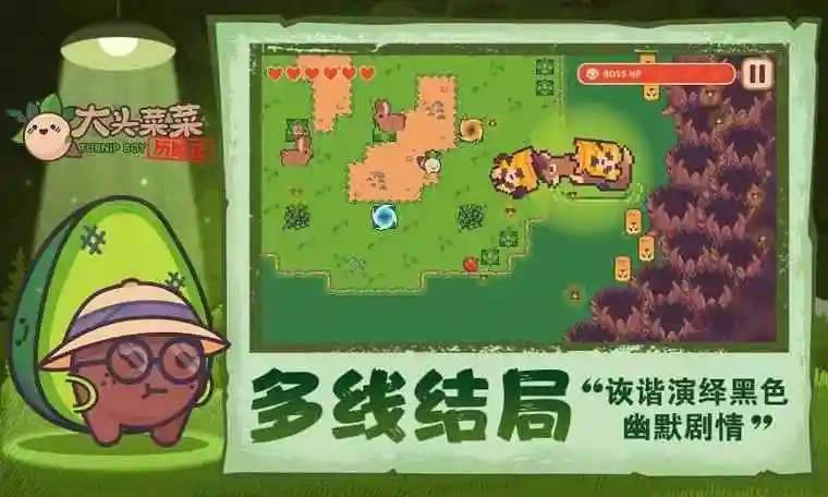 《大头菜菜历险记》是一款Q萌逗趣的冒险解谜游戏。故事里,主角大头菜因为拖欠房租被房东赶出门,为了还清欠洋葱市长的债务,就此踏上了一段奇妙旅程。在游戏中,玩家需要从各处搜集工具,解决旅途中遇到的谜题;还会邂逅性格各异的角色,与一些危险动物展开交锋。最终,你将揭露一场惊天阴谋,还清房租,成为人人称赞的大英雄——快来开启这段冒险吧!