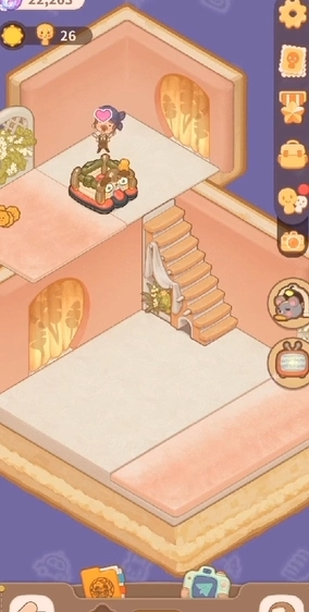 菜单靠前的几个第一级选项不会提升人气,后续升级到第二级时能增加1点人气,第三级即为满级,升级到第三级可提升2点人气。升级过程中价格(即用于购买家具的饼干数量)会同步上涨,且升级设有前提条件,满足条件后会出现如图所示的上升箭头提示;进行厨艺挖掘操作时,需注意避免点击速度过快,以免错过消除道具,建议快速连续点击不同行、不同列且距离较远的位置,以此降低操作失误的概率。