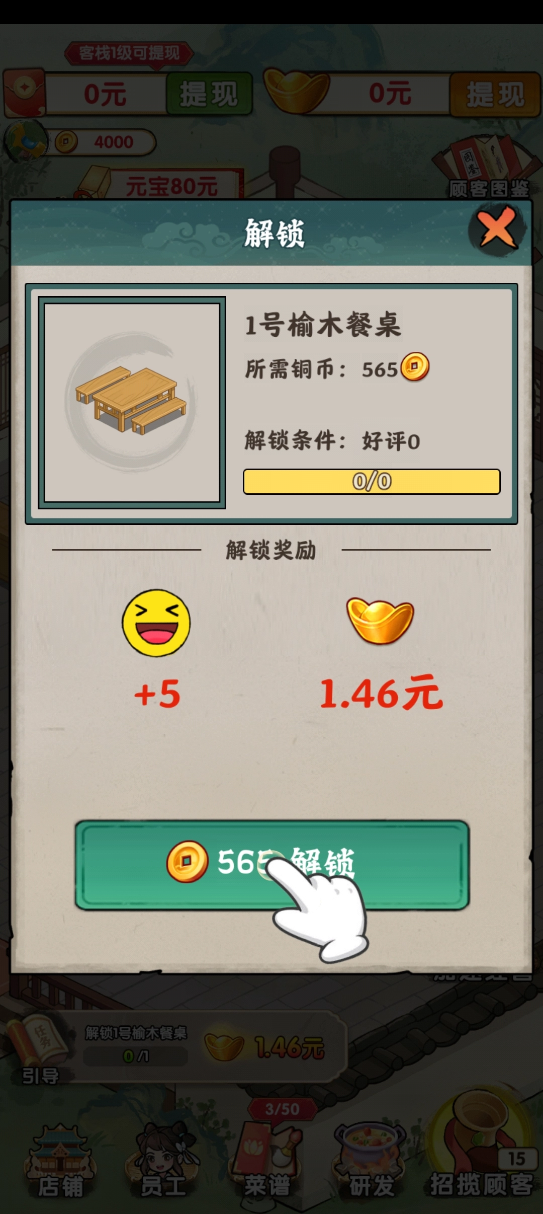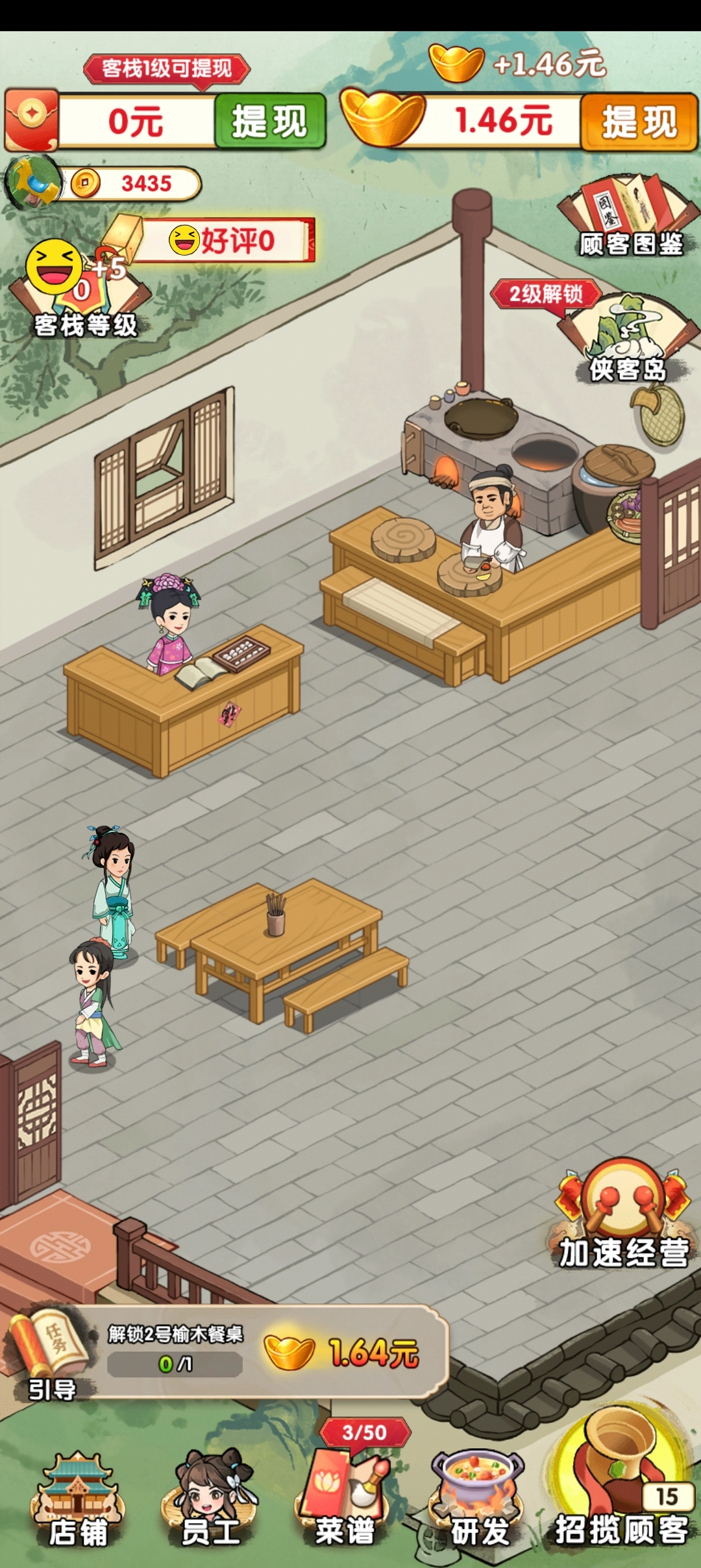 包含升级客栈、招募员工、研发菜品等核心玩法,体验经营店铺的乐趣。