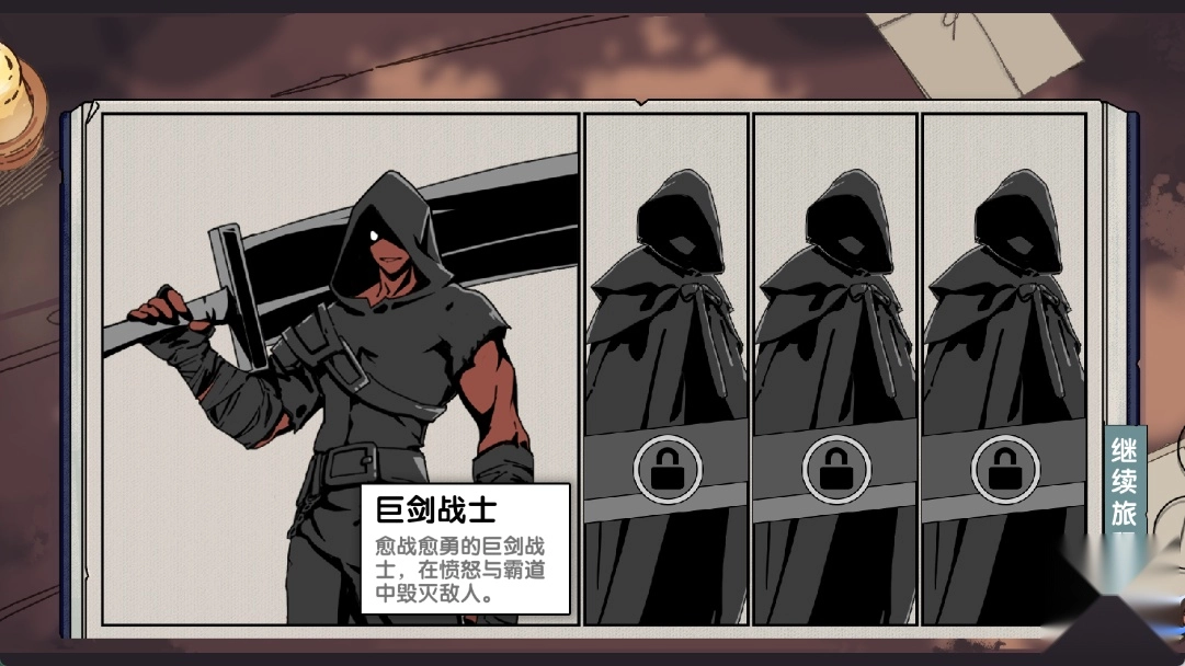 游戏开始时,我们仅能选择巨剑战士这一角色,选定他之后,我们便继续推进游戏进程。