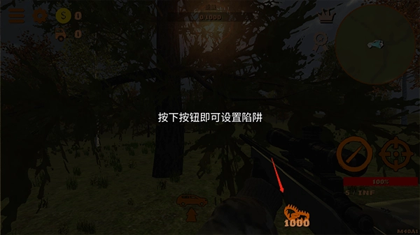 当发现猎物时,可借助倍镜对准目标,随后点击射击按钮完成击杀操作。