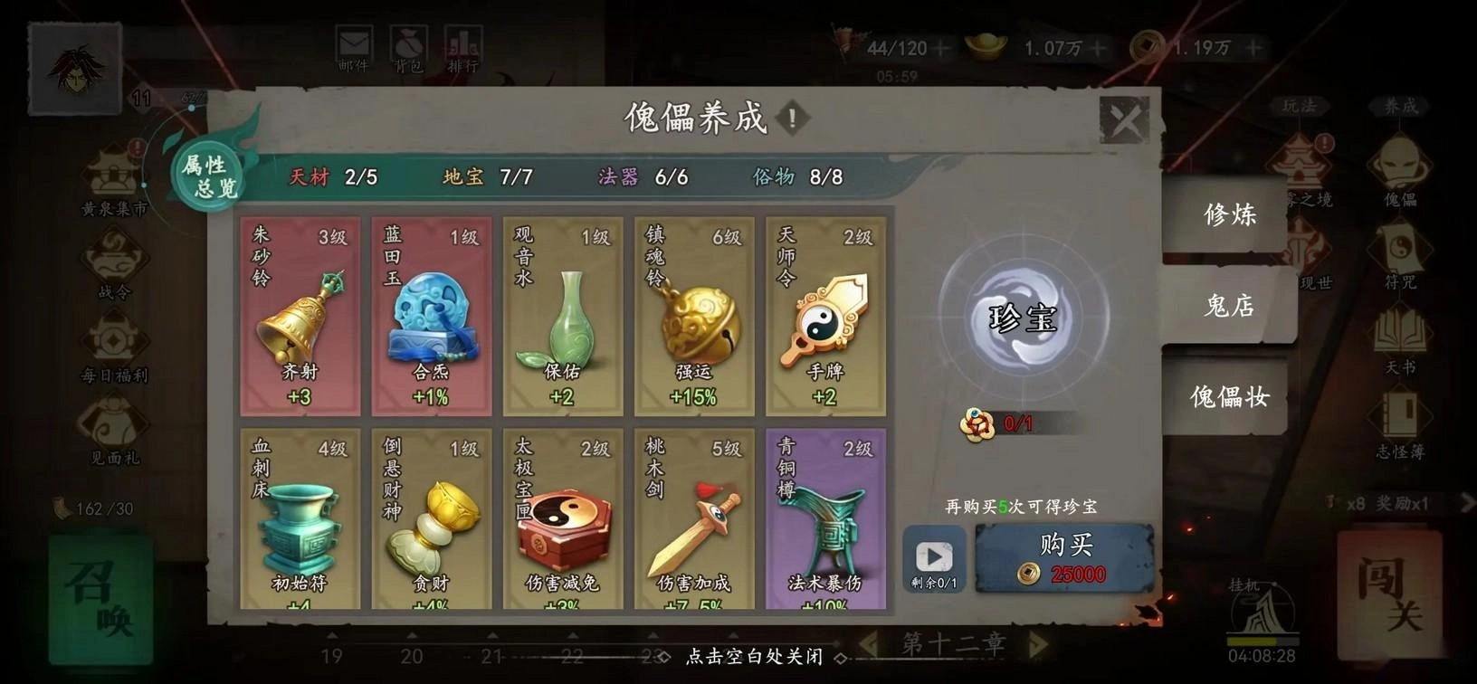 局外也能通过鬼店消耗战斗所得的铜钱,购买各类天材地宝,以此提升自身的属性与特殊能力。