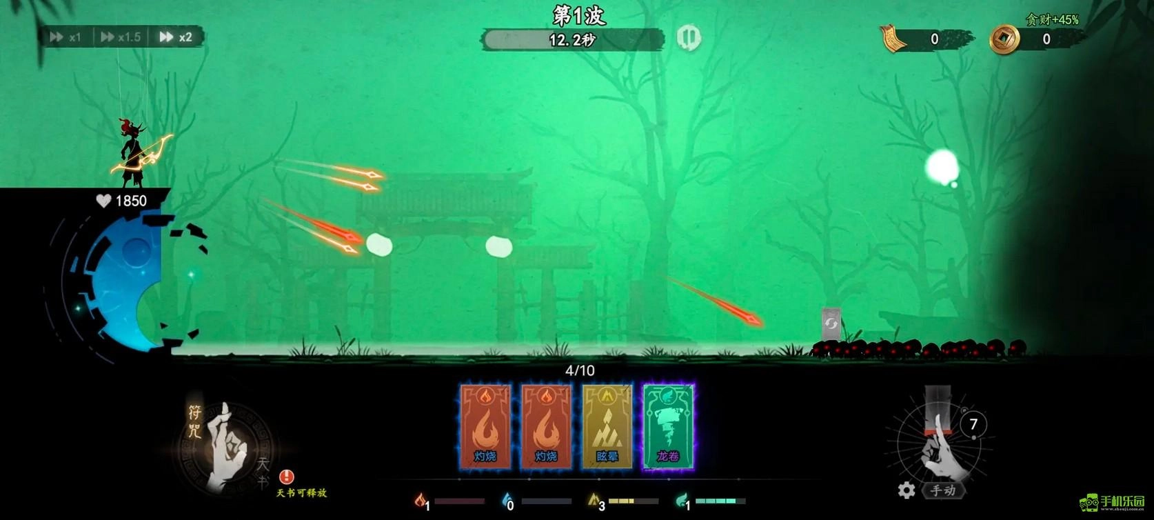 符咒/天书需在地图指定位置释放,能有效攻击敌人并阻止其进攻。这类符咒的合成级别越高,威力就越强,建议尽量合成高级别——因为除了直接释放的效果外,还有一个关键作用是积累五行点数,这些点数可用于天书释放。级别越高,额外获得的点数就越多,大致规律是每升一级,点数会在上一级的基础上翻倍。