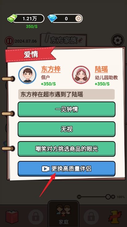 选择伴侣:游戏初期能挑选初始伴侣,要是观看广告,就能刷新并遇到更合适的对象。