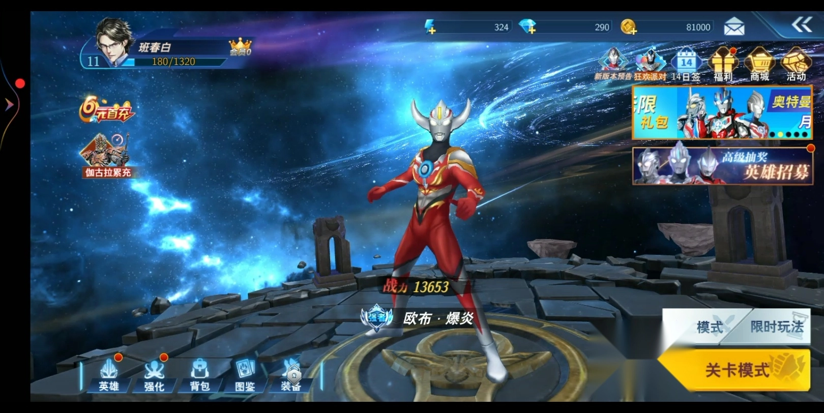 游戏会不定期推出各类限时活动,玩家参与这些活动,就能有机会直接获得新的奥特曼角色或是角色碎片。像最近更新里提到的“三重光辉专属活动限时开启”,玩家通过参与该活动,就能获取欧布奥特曼三重形态这类角色。