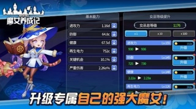 升级培养与属性选择方面:玩家每次升级时,魔女的属性都会得到提升;另外,通过为魔女穿戴不同的装备,也能强化其不同属性,选择适配的装备进行穿戴,能让魔女的实力实现飞跃性增长。