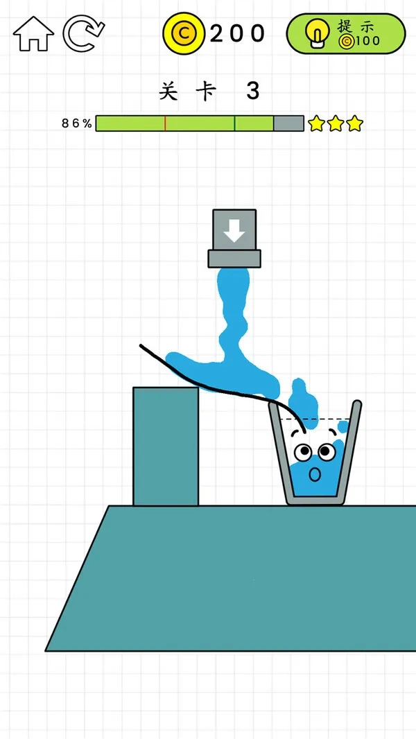 根据关卡的地形与实际状况来绘制线条,帮助水流能够顺利地注入玻璃杯,这一过程十分考验玩家的创造力。