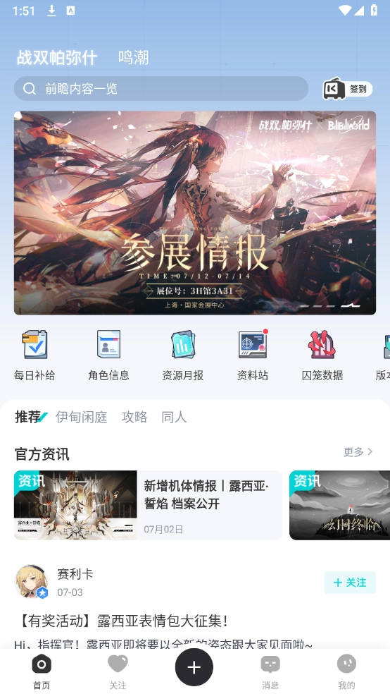 首先,作为游戏社区的库街区,为用户提供最新的游戏资讯与动态,助力用户快速掌握游戏关键信息,设有【推荐】【讨论区】【攻略】【同人】等多样内容版块。