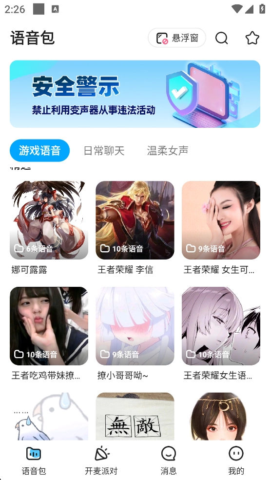 打开多啦变声器App,选择你喜欢的游戏语音。