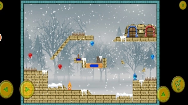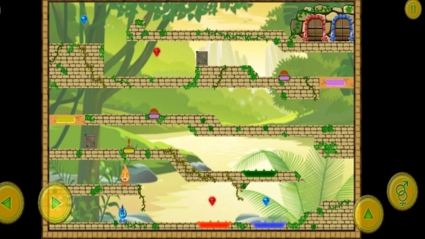 玩家可以在两个角色间直接切换,火人能通过红色区域,水人则可通过蓝色区域。