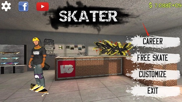 在爬爬资源里打开滑板模拟器手机版,然后点击CARER就能开始游戏啦。