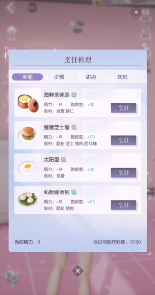 然后点击左上角”饿扁了“,选择要烹饪的料理;