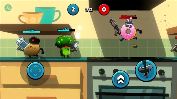 食物帮派是一款Q萌有趣的休闲闯关游戏。游戏以食物间的斗争为主题,每个角色对应一种食物,还能使用各类武器。由于蔬菜之间产生矛盾,彼此争斗起来,玩家需要加入这场大乱斗,在确保自身安全的前提下消灭其他玩家即可获胜。想必大家对这款风格独特的大乱斗游戏会很感兴趣,想尝试一下吧?在这里,你可以拿起武器与其他蔬菜玩家对战。食物帮派中文版除了玩家间的大乱斗外,还有超多关卡和强大的BOSS等待挑战,每个BOSS的形象都十分有趣,相信大家玩了会爱不释手。不过,虽然游戏很好玩,但不少小伙伴觉得有些关卡难度较高,也难以买到心仪的装备。
