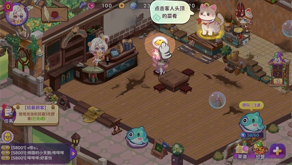 点击客人头顶的菜肴来给客人做菜