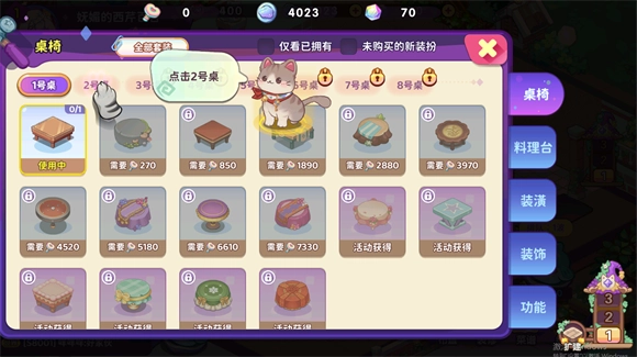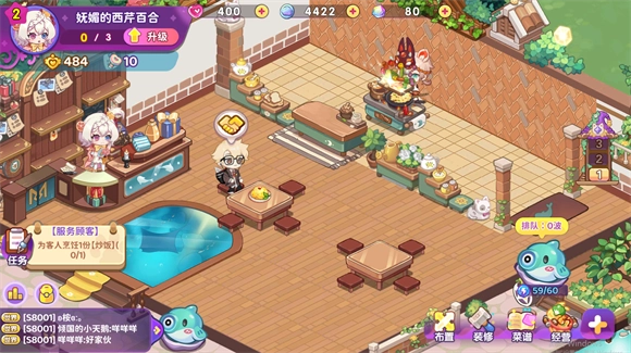 通过积攒的云币进行装修提升餐厅的评级