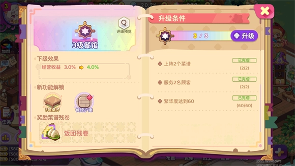 提升餐厅评级以解锁更多的玩法