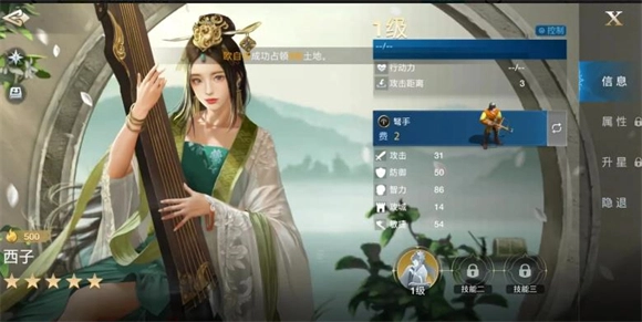 西子:可操控武将与弓兵,普通攻击的距离为3。她的技能是【倾国倾城】,这是一个主动技能,生效距离为4,触发概率35%,能缩短敌人的攻击距离,还会让敌人陷入混乱状态。只要处于中军位置,就能覆盖到对面的所有单位。不过技能效果存在一定浮动,要是作用在对方中军或统帅位置的输出型角色身上,就能发挥出最大的效果。推荐的搭配组合有:武安君+西子+孟恬、武安君+军神+西子、穆兰+西子+王昭昭