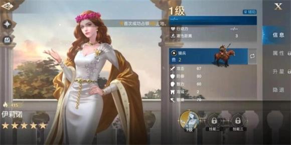 伊莉诺是一名辅助定位的骑兵武将,普攻距离为3格。她的技能是【玫瑰之治】,属于开场触发的技能,生效范围同样是3格,发动几率达到100%,并且有超过一半的概率能为我方部队提供减伤效果,本质上可以看作一个被动技能。这个技能表现中规中矩,没有特别突出的亮点,不过最大的优势在于适配性强,能和多种阵容搭配。阵容搭配方面,推荐组合法比乌斯、伊莉诺与独眼元帅。
