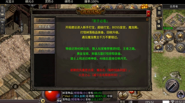 前期建议优先合成的道具为:魔血石(具备每秒回血回蓝的效果)、火龙之心(能够缩短合击技能的释放时间)