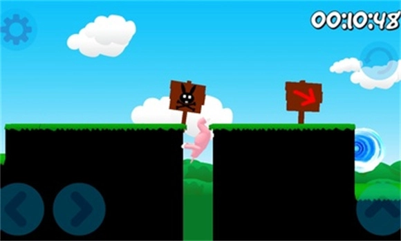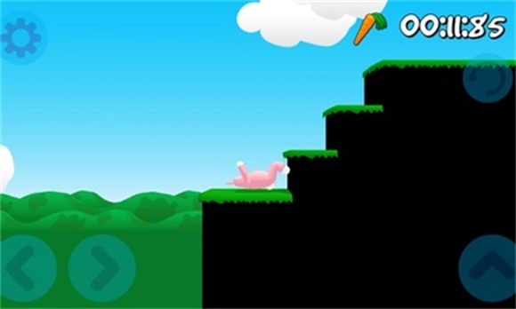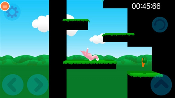 正式开启关卡挑战,先熟悉下操作流程吧。左下方的左右按钮能控制兔子人移动,右侧是跳跃按钮。