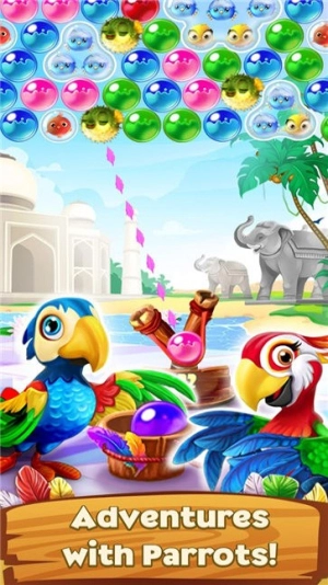 1、剧情消除玩法:借助泡泡射击击破气球来解救幼鹦鹉,每成功救出一只都能收获满满的成就感,适配休闲消除类场景,趣味性拉满。