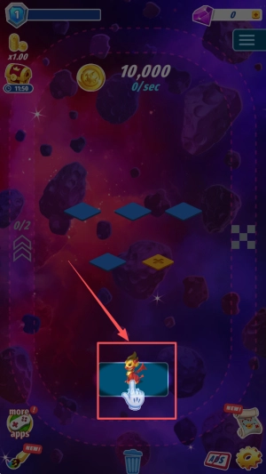 2、接下来,点击屏幕获取金币(每秒都能赚取),逐步将余额从10,000提升至解锁所需的门槛金额。