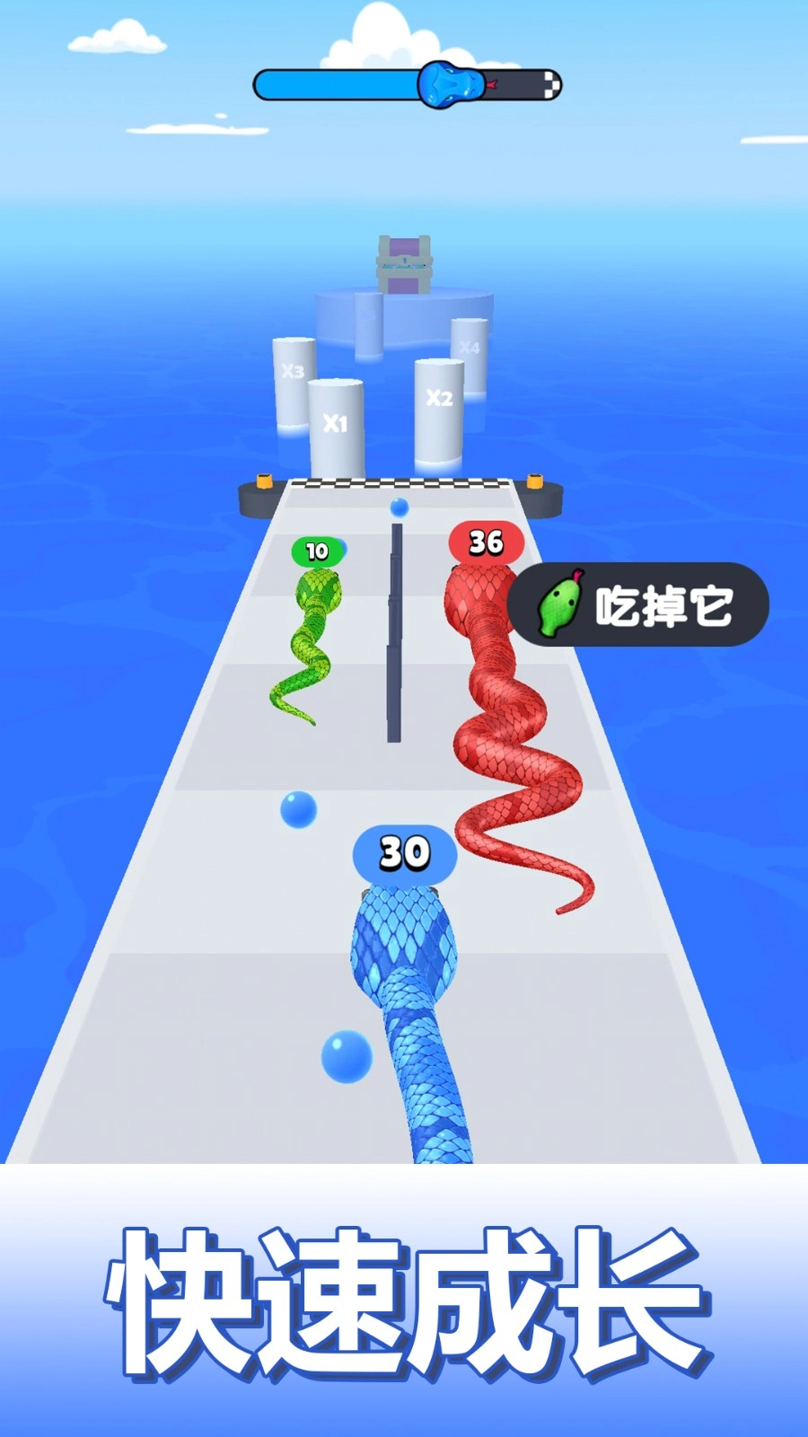 2. 以动物运动会为背景主题,玩家将操控一条小蛇形态的动物选手,在充满挑战的赛道上朝着终点全力冲刺。