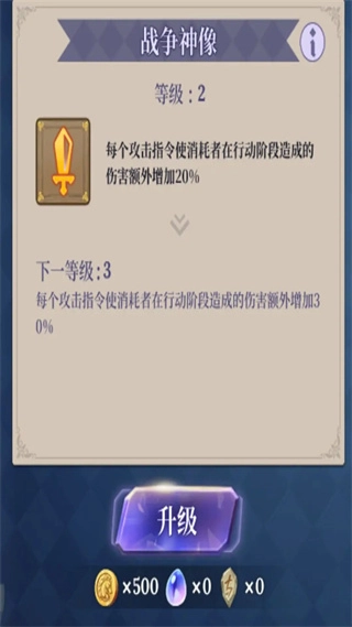3、进入神殿后,将所有神像都升级到2级。这样在之后的游戏进程里,使用每张指令卡时就会触发各自独特的效果了。