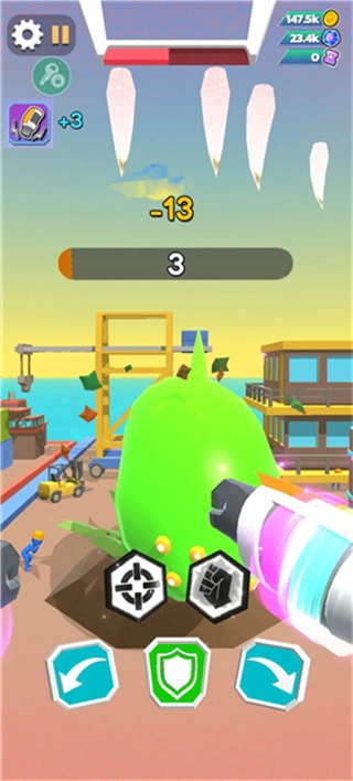 3、等敌方攻击结束进入冷却阶段后,按照释放打击的提示点击攻击按键,向敌方机甲发起进攻,持续输出能快速减少其血量。