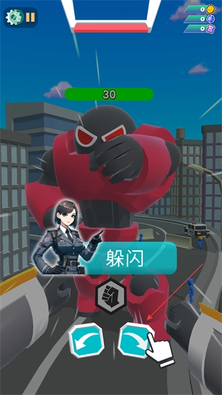 2、在战斗过程中留意敌方机甲发起攻击前的预备动作,通过点击界面左右两侧的闪避按钮,并结合躲闪提示来执行操作,能够切实避开敌方造成的伤害。