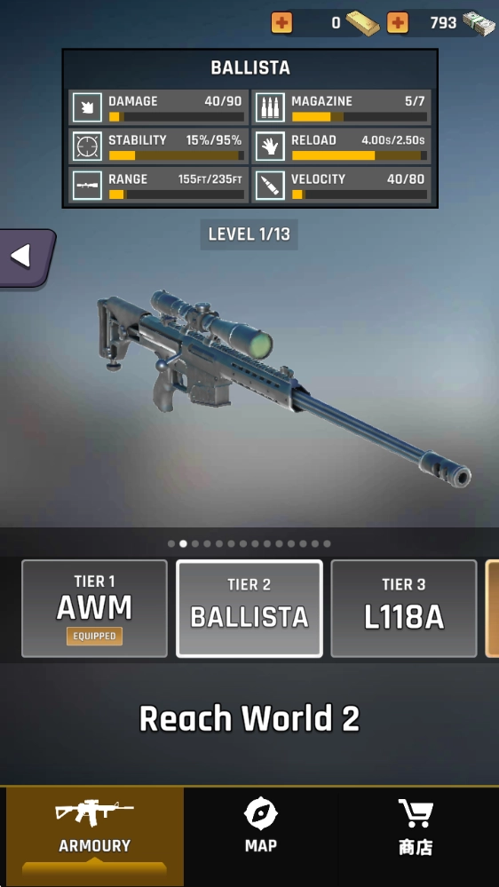1、从主界面进入武器库,你可以在此挑选并购买各类武器,其中部分武器需进入新世界后才能解锁。