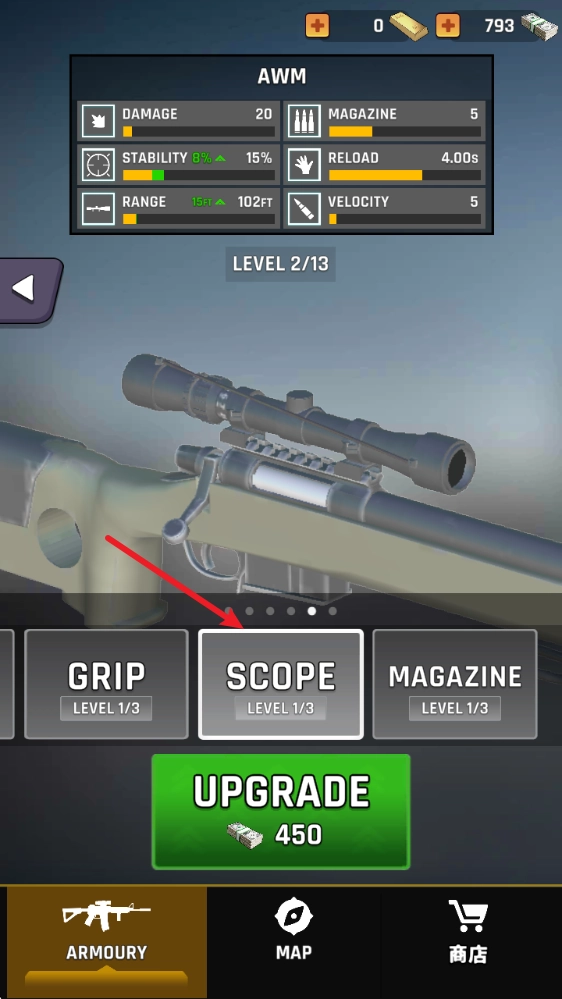 3、购买到的优质武器,还能针对不同部件开展升级操作,以此来提升相应的性能表现。