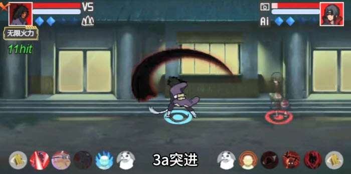 单点组合技的前两段和普通红夜保持一致,其中第二段具备破霸体的效果。